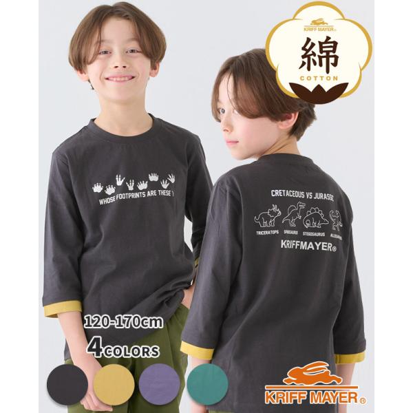 クリフメイヤー キッズ KRIFF MAYER KIDS Tシャツ 7分袖 半端袖 綿100 コットン ストレッチ シンプル 春 夏 秋 子ども服 2025SS 楽LUCK-7分袖T 恐竜