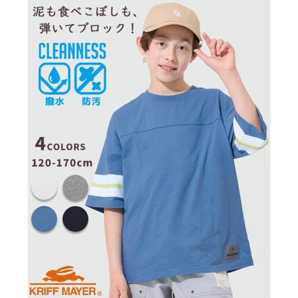 クリフメイヤー キッズ KRIFF MAYER KIDS 半袖 Tシャツ 汚れにくい 撥水 防汚 綿100 コットン クリーネス 袖ライン T