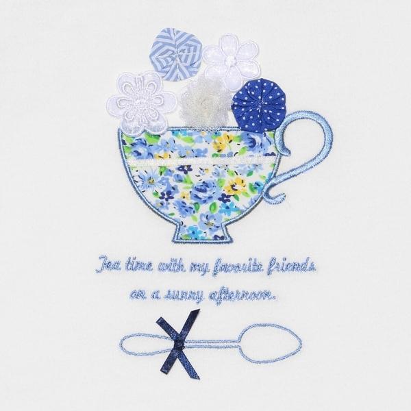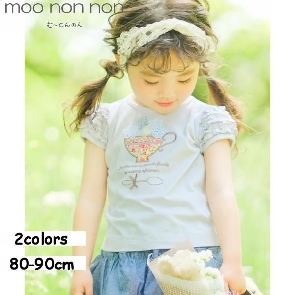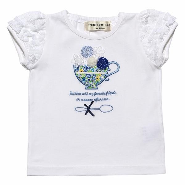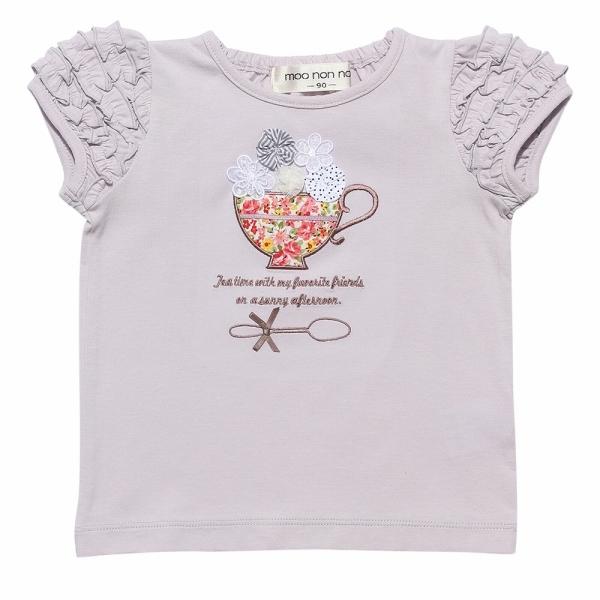 TIME SALE 59%OFF ポイント5倍 子供服 女の子 Tシャツ 半袖 普段着 通園 ベビー 花柄 ティーカップ 刺繍 袖 オフホワイト パープル 80cm 90cm むーのんのん
