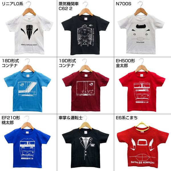 鉄道 新幹線 キッズ Tシャツ各種(リニア・C62・N700S・18Dコンテナ・19Dコンテナ・金太郎・桃太郎・車掌・E6系) メール便なら送料無料
