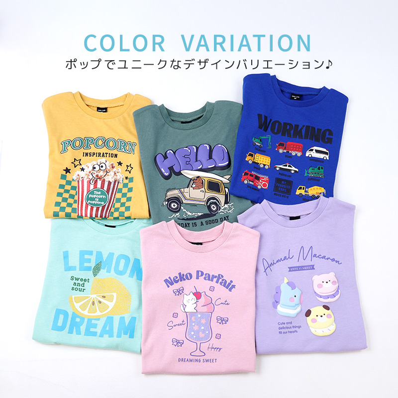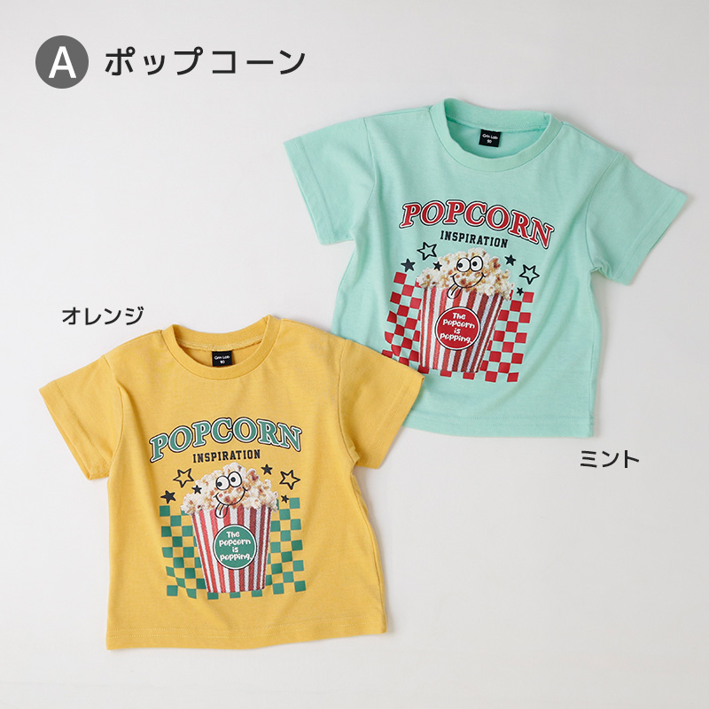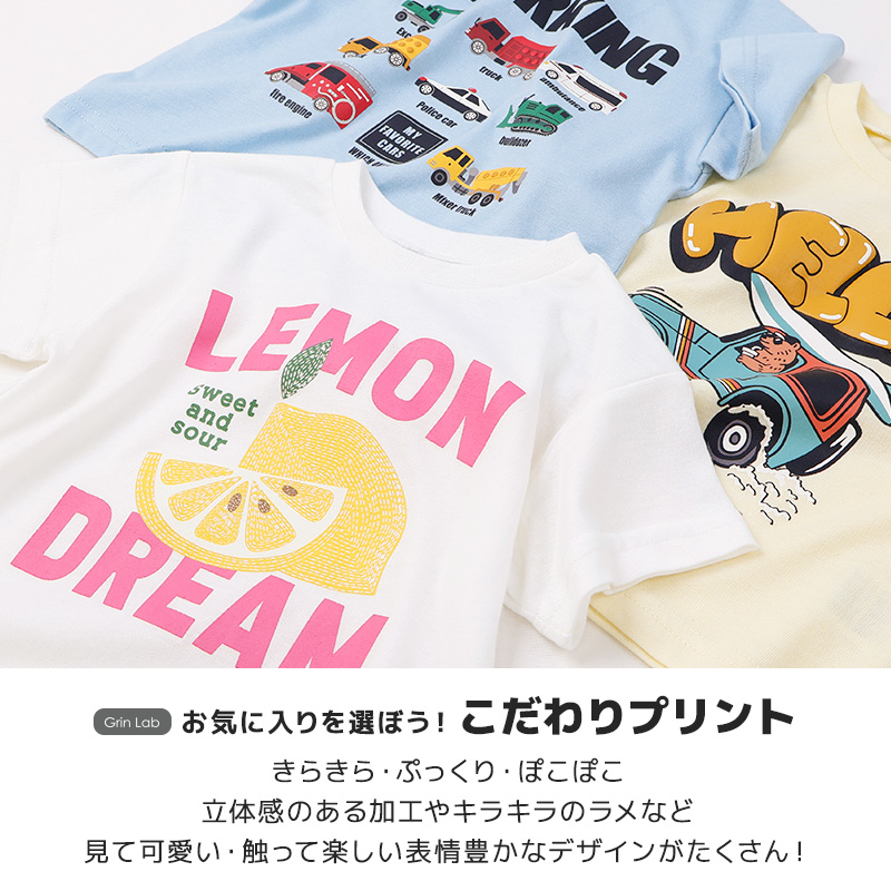 キッズ Tシャツ 半袖 プリント カットソー 男の子 女の子 ベビー服 GrinLab グリンラボ ポップコーン 食べ物 働く車 はたらくくるま