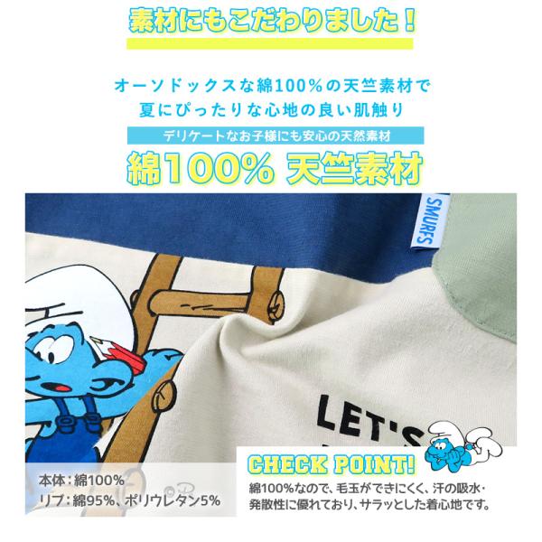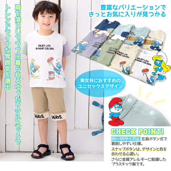 キッズ Tシャツ 半袖 子供服 スマーフ 男の子トップス キャラクター アニメ キッズ ベビー 綿100% 切替 80cm 90cm 95cm 100cm 110cm 120cm 130cm SMURFS 女の子