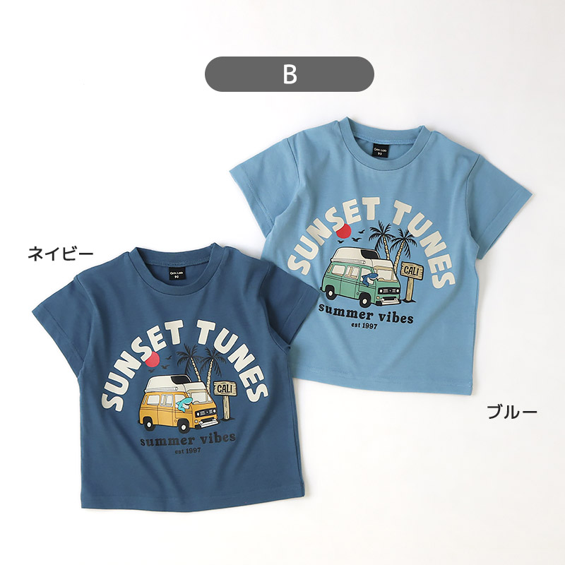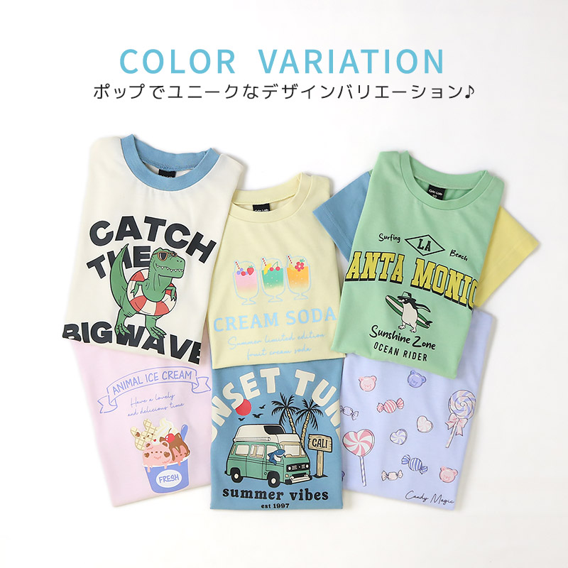 キッズ ベビー Tシャツ 半袖 接触冷感 男の子 女の子GrinLab グリンラボ トップス カットソー 天竺 プリント 恐竜