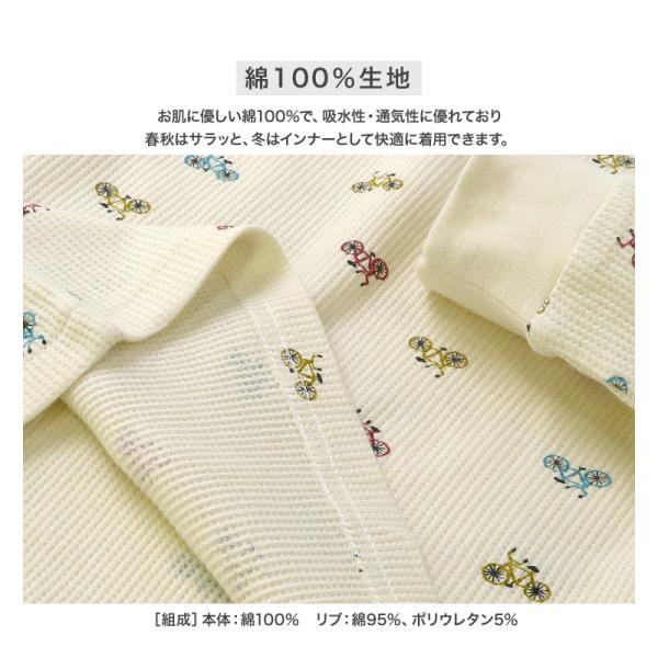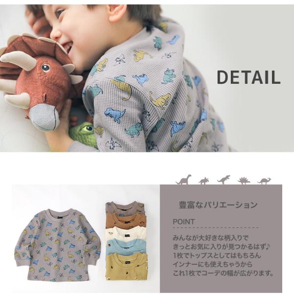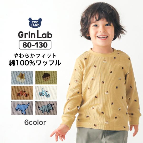 ロンt キッズ 男の子 女の子 長袖 Tシャツ 総柄 ワッフル トップス 恐竜 ダイナソー のりもの マロン GrinLab ベビー 80cm 90cm 95cm 100cm 110cm 120cm 130cm