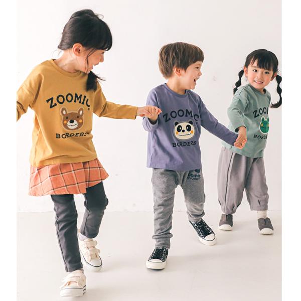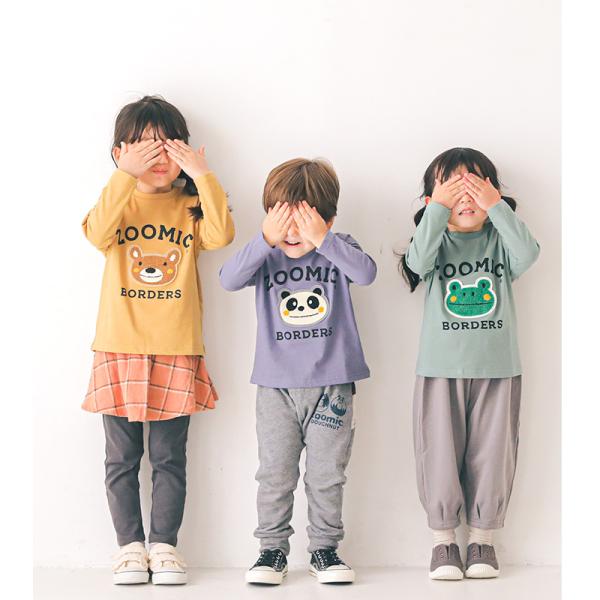 Tシャツ 長袖 ズーミック キッズ トップス くま サガラ刺繍 長袖 ロンt80cm 90cm 95cm 100cm 110cm 120cm 130cm クマ パンダ カエル ベビー 秋 春 ZOOMIC