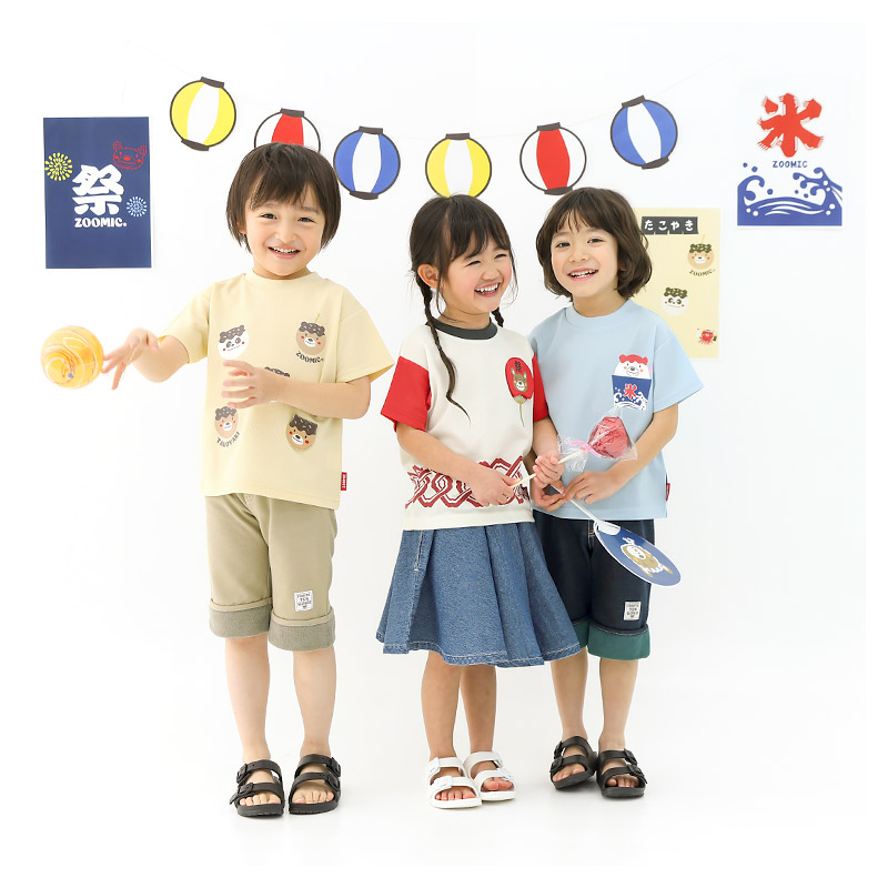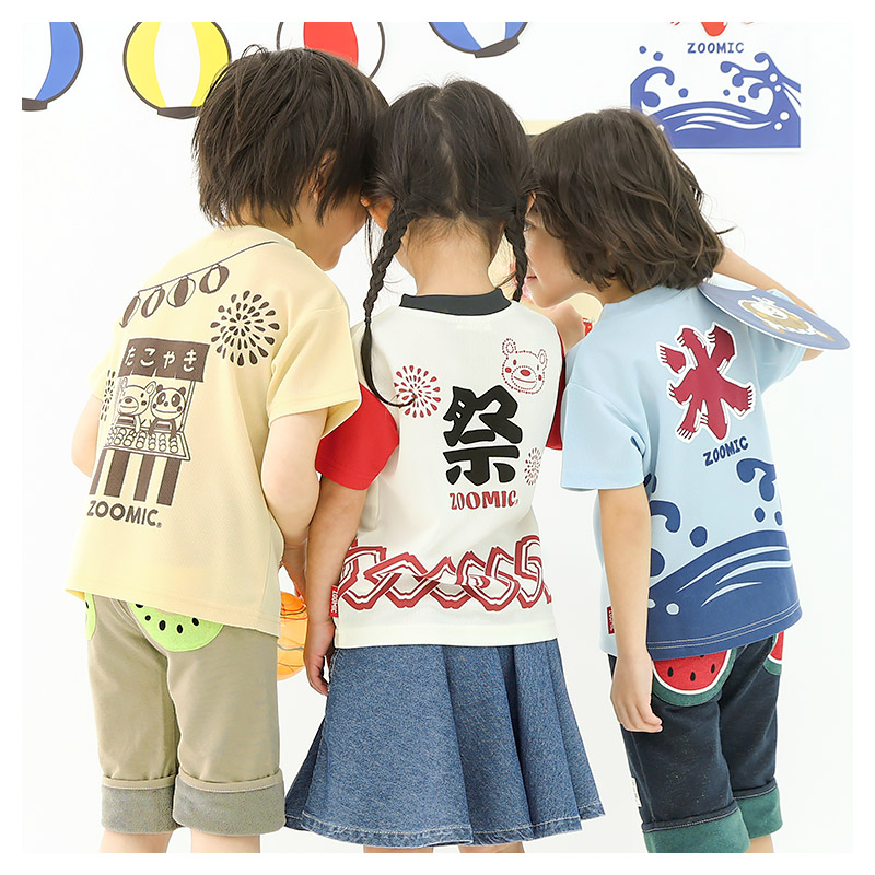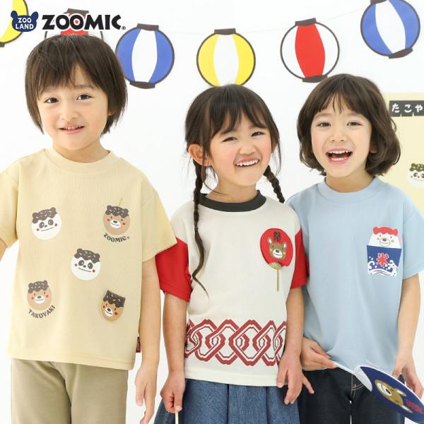 キッズ ベビー Tシャツ 半袖 接触冷感 メッシュ 動物 くま パンダ 祭り かき氷 たこやき 男の子 女の子ZOOMIC ズーミック トップス