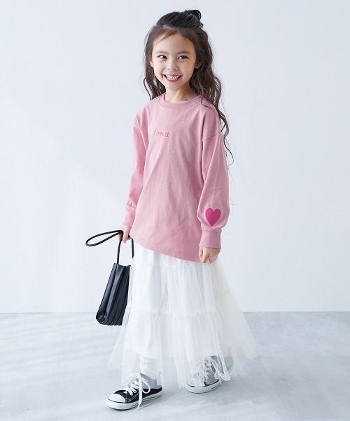 tシャツ 綿100% お洗濯してもよれにくい ガールズワンポイント 長袖Tシャツ キッズ 子供服 女の子