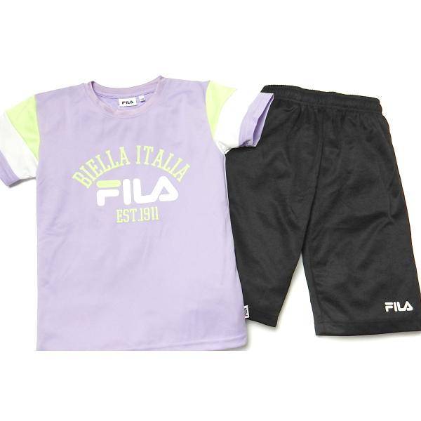送料無料 女児 ジュニア 吸汗速乾 半袖 Tシャツスーツ 上下組 FILA ハーフパンツ ジャージ 通気性 配色 子供服 女の子 iw-0882 メール便対応