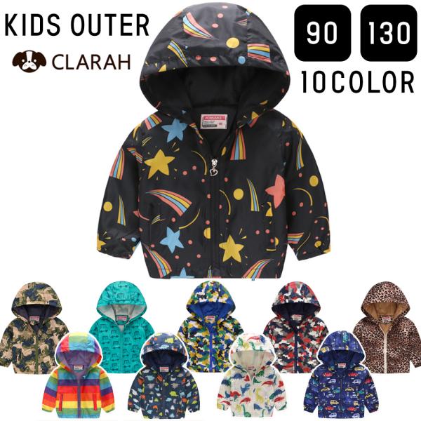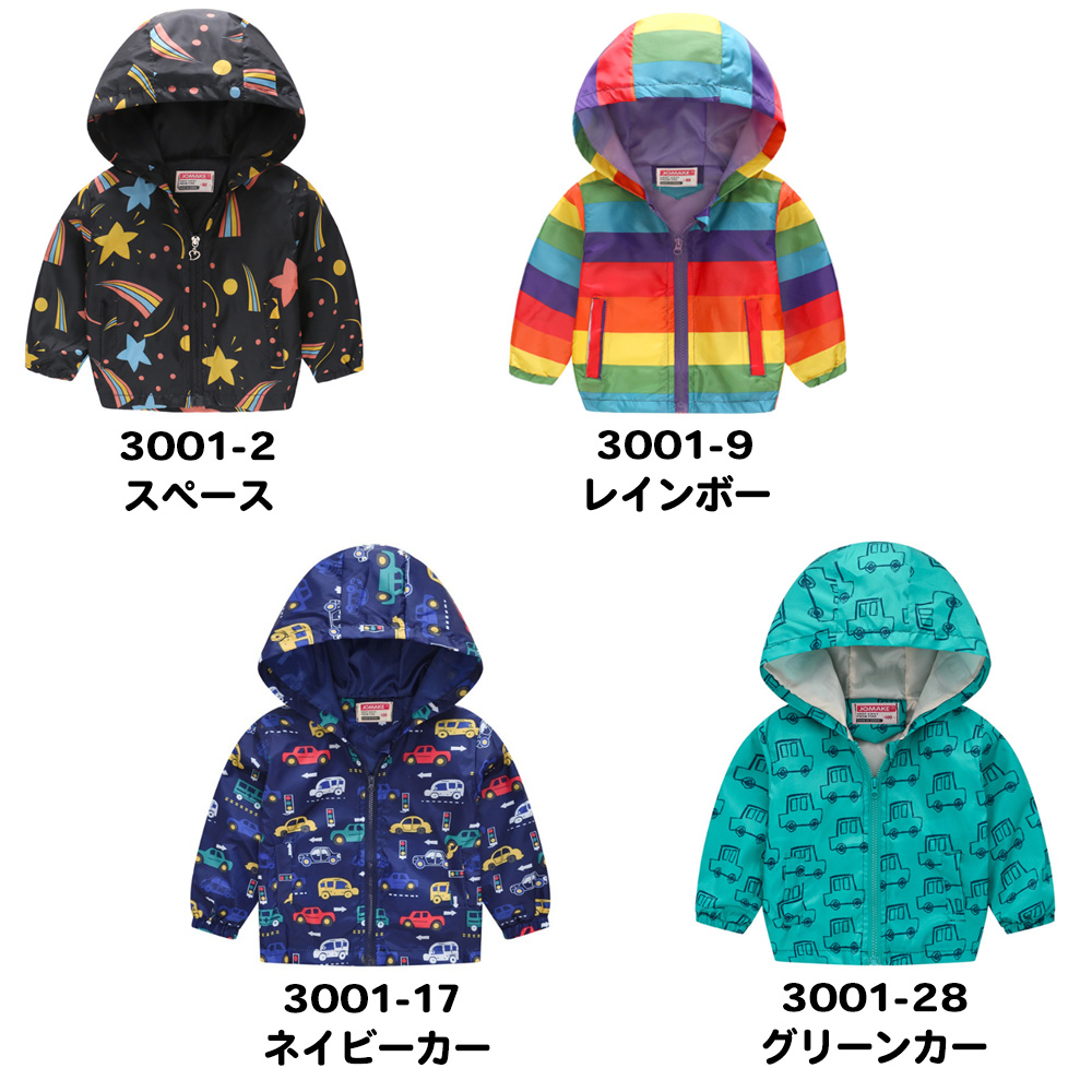 アウター キッズ 羽織り ウインドブレーカー 10カラー 男の子 上着 恐竜 車 ヒョウ柄 虹 迷彩 宇宙 ネコポス送料無料