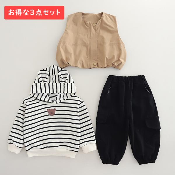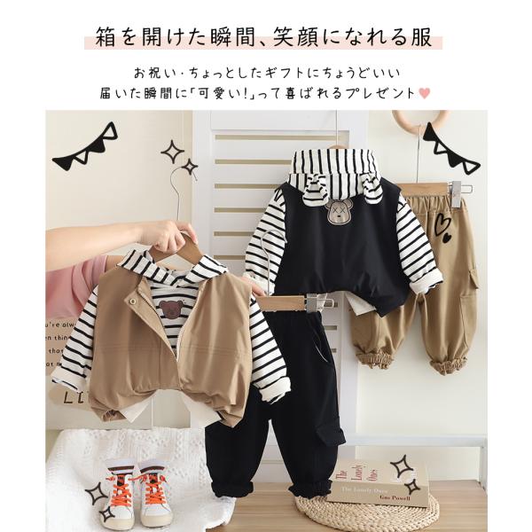 キッズ ベビー 3点セット セットアップ 上下セット 長袖 ベスト 男の子 80 90 100 110 子供服 秋冬
