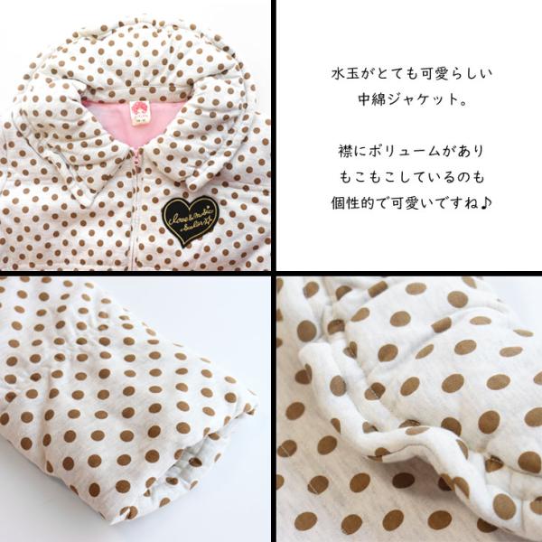 ScoLar スカラー KIDS ドット柄 中綿ジャケット 水玉 綿 フードなし ガールズ 女の子 かわいい 個性的 プレゼント 防寒 長袖 秋冬 暖かい オートミール 150cm