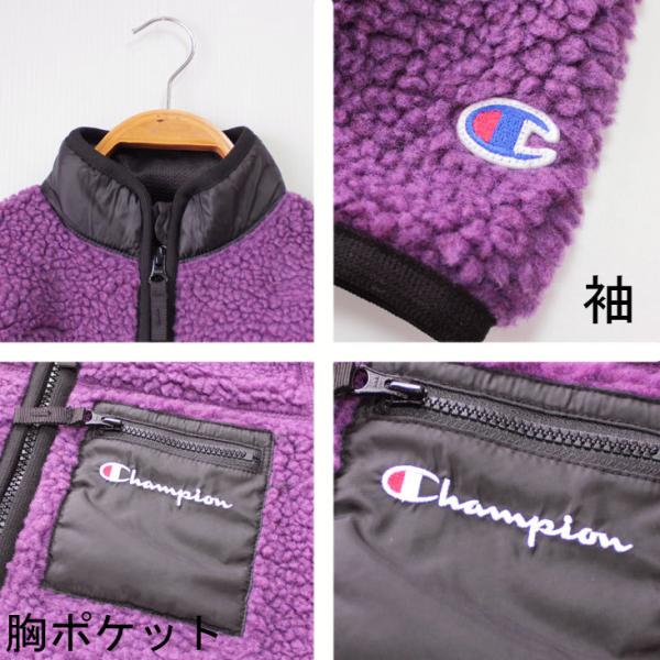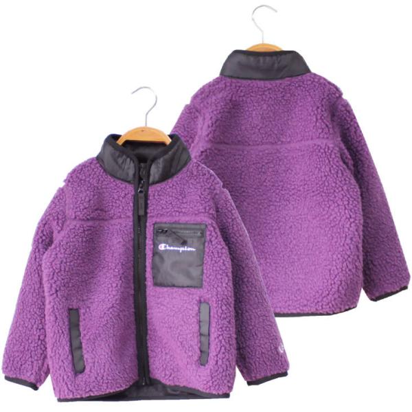 champion チャンピオン kids キッズ 子供服 ボア フルジップ 長袖 ポケット 秋冬 紫 パープル ロゴ 刺繍 Cマーク シンプル アウター