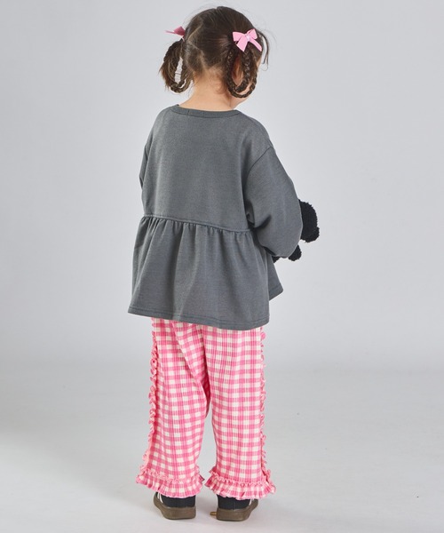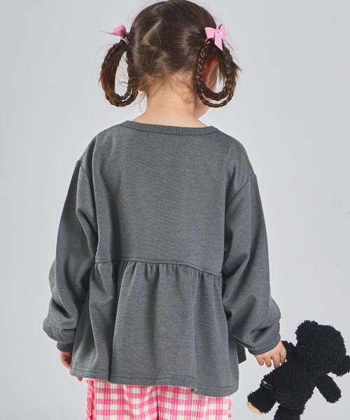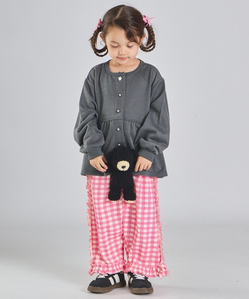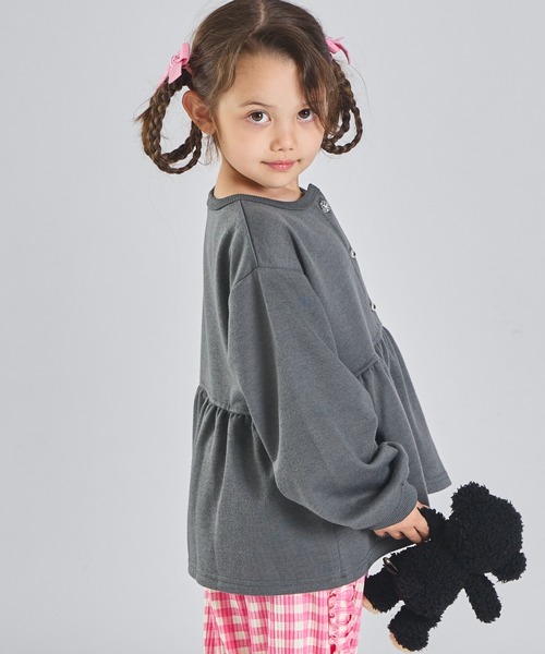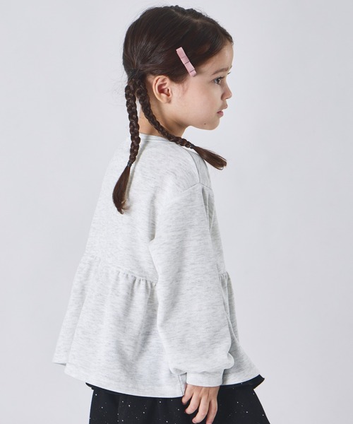「まいにちスウェット」ガールズ 裏毛 ペプラム切り替え フラワーボタン スウェットカーディガン キッズ 子供服 女の子