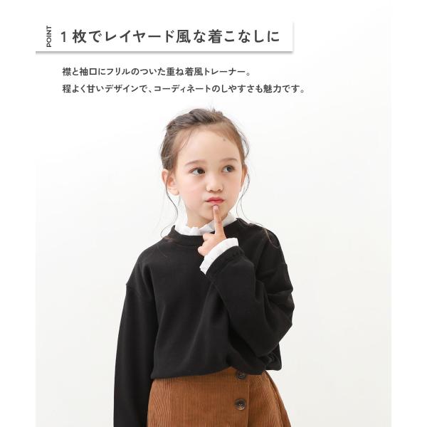 トレーナー トップス 綿100% 重ね着風フリル スウェットトレーナー キッズ 子供服 女の子 デビロック devirock