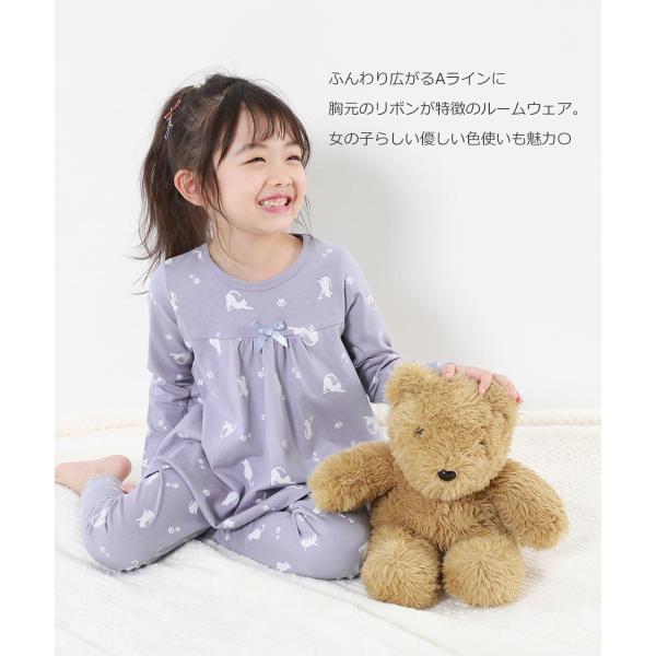 パジャマ キッズ 長袖パジャマ 子供服 女の子 綿100% 120 130 140 150 160 胸元リボン Aライン ルームウェア 長袖ルームウェア デビロック devirock