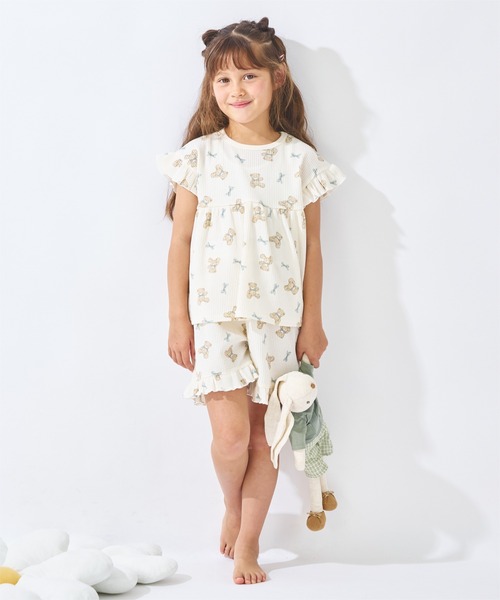 パジャマ 総柄ワッフルパジャマ キッズ 子供 女の子