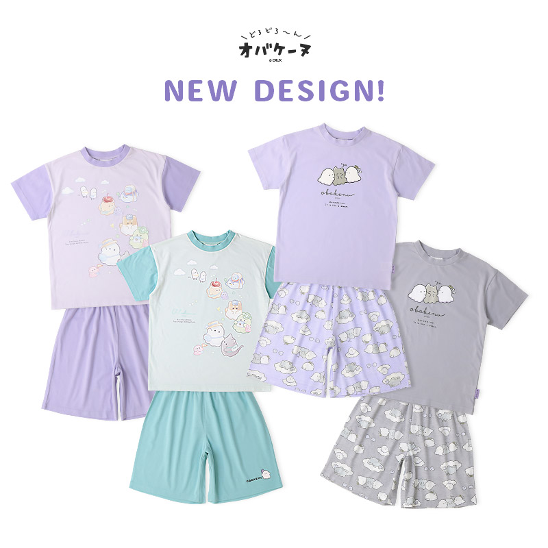 オバケーヌ パジャマ キッズ 半袖 女の子 上下セット ルームウェア 子供服 キャラクター コラボ 総柄 プリント 可愛い 2点セット 天竺 カットソー Tシャツ
