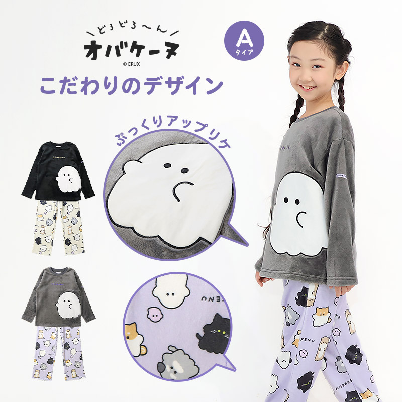 オバケーヌ ルームウェア 長袖パジャマ フリース 女の子 キッズ 上下セット ルームウェア パジャマ 子供服 キャラクター 2点セット 120 130 140 150 160