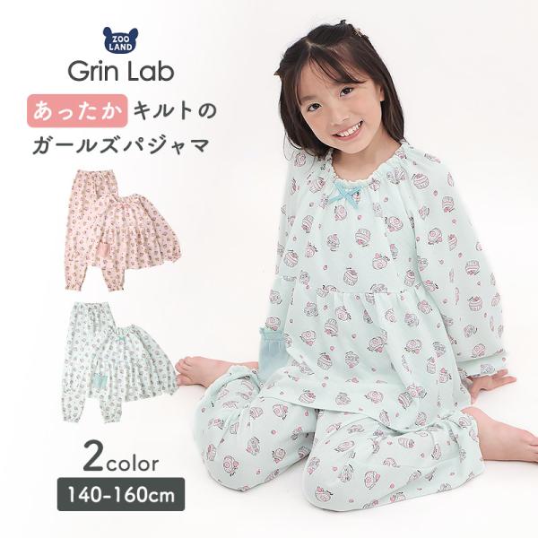 ガールズ パジャマ 長袖 キッズ ニットキルト ジュニア 女の子 140 150 160 ルームウェア 部屋着 寝巻き ナイトウェア セットアップ フリル リボン 可愛い