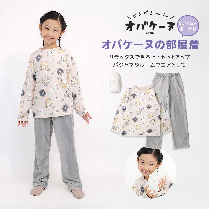 ペンポーチ付き オバケーヌ ルームウェア 長袖パジャマ フリース 女の子 キッズ セット ルームウェア キャラパジャマ 子供服 キャラクター ガールズパジャマ
