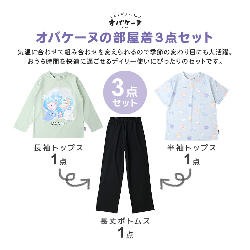 オバケーヌ パジャマ キッズ 半袖 長袖 2トップ 女の子 上下セット 3点セット ルームウェア 子供服 キャラクター コラボ 春夏パジャマ 120-160cm