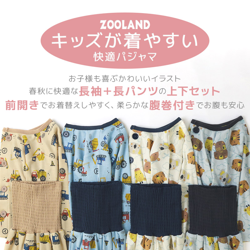 キッズ パジャマ 長袖 男の子 腹巻付き ルームウェア 前開き スムース 総柄 車 動物 プリント 80cm 90cm 95cm 100cm 110cm 120cm 130cm 子供パジャマ