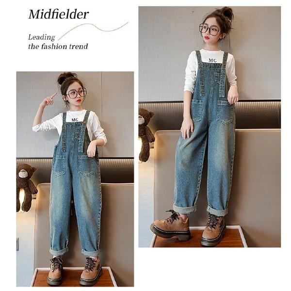 早い者勝ち【倉庫移転 在庫限りの大幅値下げ中】オーバーオール キッズ デニム サロペット ジーパン 女の子 120 130 140 150 160 170 ダークブルー ライトブルー