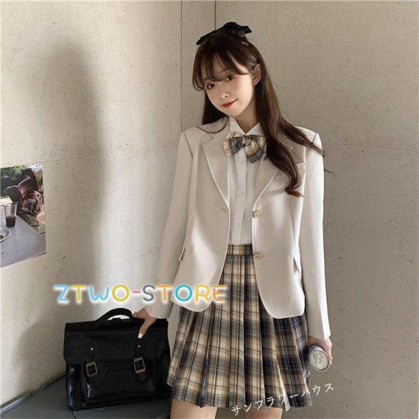 入学式 卒業式 スーツ 女の子 女子 高校生 フォーマルスーツ チェック柄 ジャケット コート スカート ブラウス セットアップ 3点セット 可愛い 発表会 S M