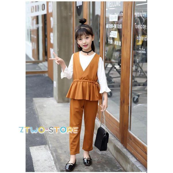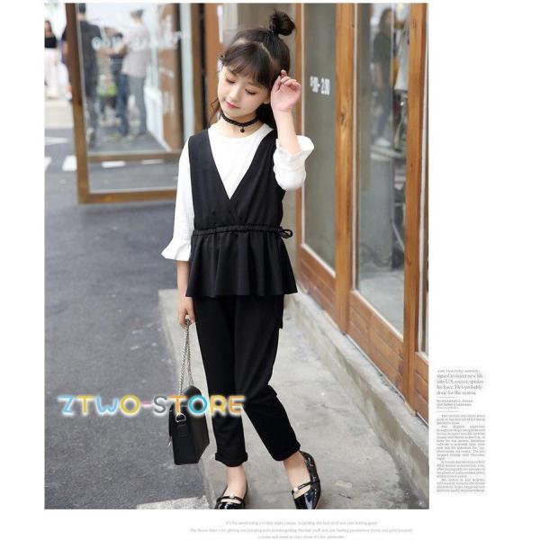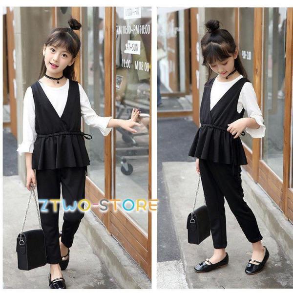 入学式 パンツスーツ 女の子 フォーマルスーツ 韓国 子供服 ブラック カーキ 子供スーツ キッズ ブラウス ベスト パンツ 3点 卒業式 110 160 ピアノ 発表会