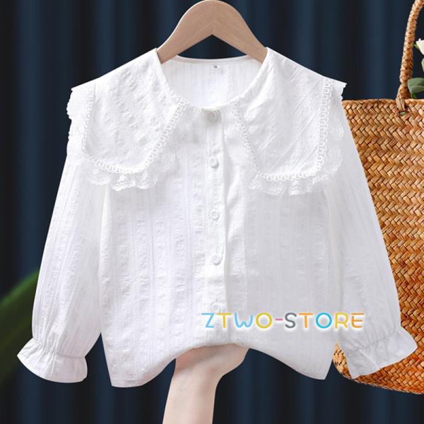 卒業式 ブラウス シャツ 女の子 キッズ フォーマル 子供服 春 子供 白 レース飾り 大きい襟 女子 お嬢様 長袖 ジュニア 結婚式 入学式 入園式 卒園式 七五三