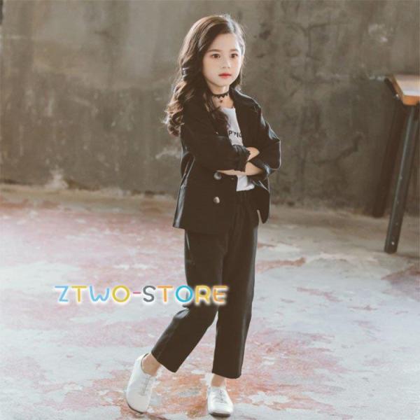 卒業式 パンツスーツ 女の子 黒スーツ ピアノ発表会 フォーマル 小学生 中学生 ジュニア セットアップ 韓国 子供服 上下スーツ 学園祭 結婚式 卒園式