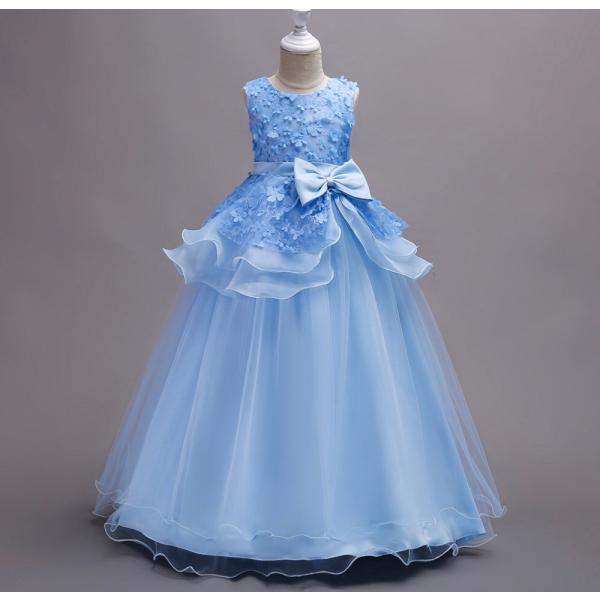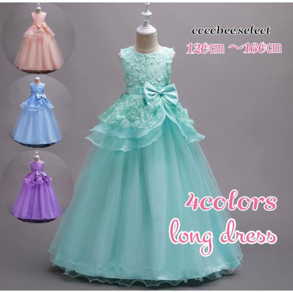 子どもドレスロングドレスミントグリーンブルーパープル色ドレスキッズドレス 結婚式 ピアノ発表会女の子ドレス パーディー演奏会120130140150160cm
