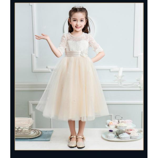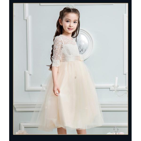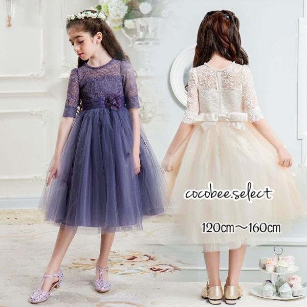 子供ドレス キッズ ワンピース 発表会 ピアノ 結婚式 キッズドレス コンクール 袖あり フォーマル フラワーガール シャンパン パープル 120 130 140 150 160 cm