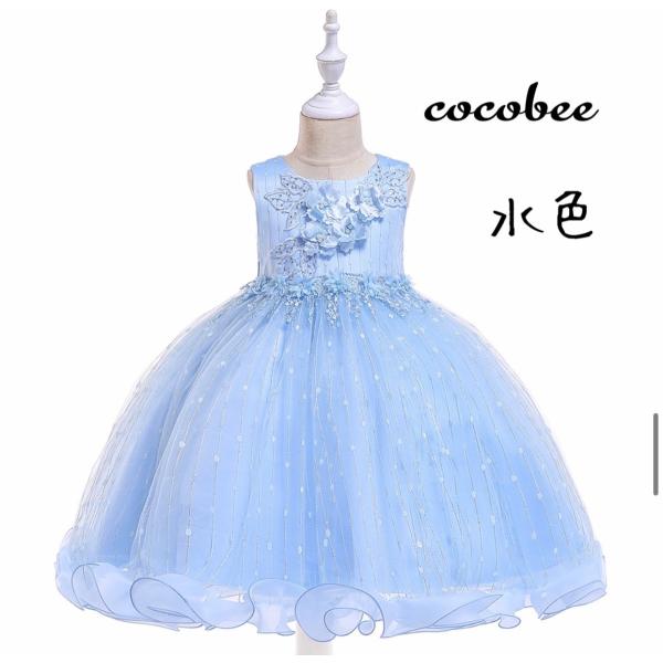 子供ドレス ピアノ発表会 ジュニア キッズ コンクール お誕生日女の子ワンピース パーブル ブルー ホワイト ドレス 110 120 130 140 150