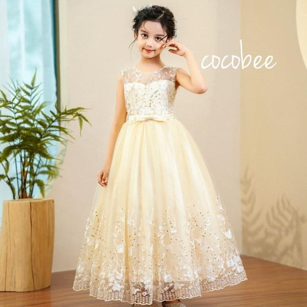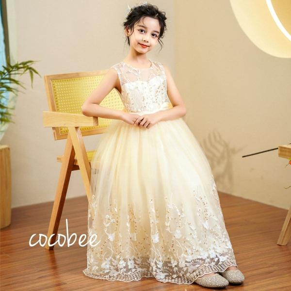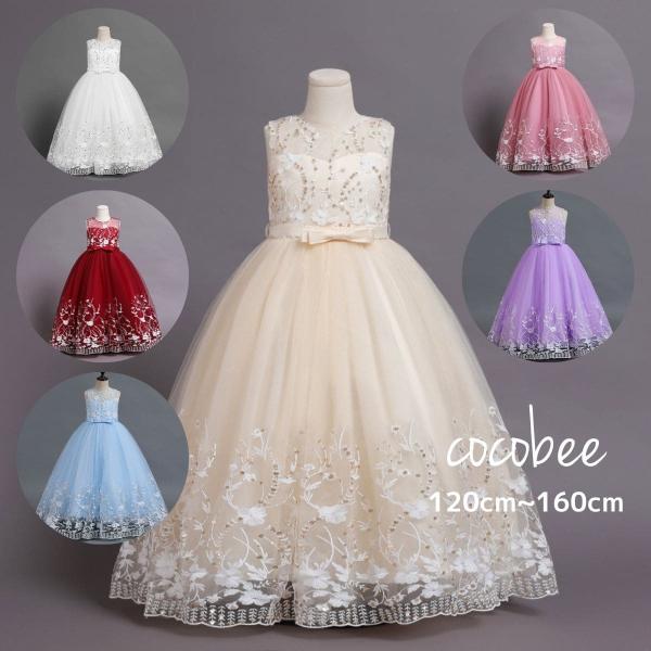 人気子供ドレスピアノ発表会 ジュニア キッズ ロングドレス リングガールコンクール お誕生日女の子ワンピース ホワイトパープル刺繍ドレススカイブルー