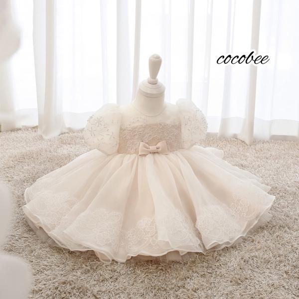女の子フォーマルドレスビーズ付きふわふわスカート セレモニードレスお宮参りバースデー お誕生日ドレス 七五三撮影 百日祝撮影 ワンピースリングガール結婚式
