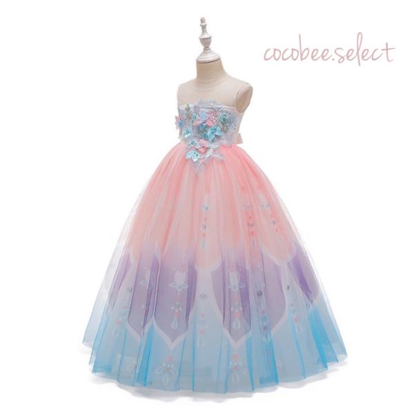 女の子ワンピース カラフルドレス 発表会お誕生日ジュニアロングドレス七五三撮影女の子コンクールドレスフォーマルドレス人気子供服110120130140150160