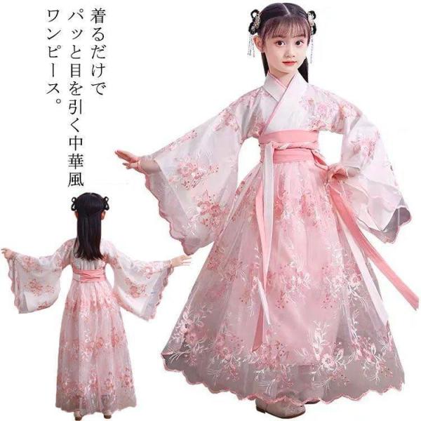 チャイナドレス 女の子 チャイナ服 唐装 漢服 ドレス 中国古風 ロングワンピース 花柄 刺繍 漢服 子供ドレス キッズ チャイナドレス チャイナ風