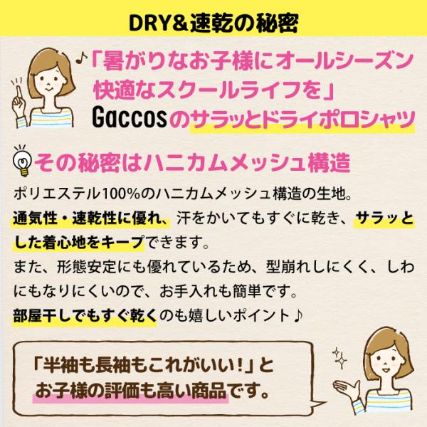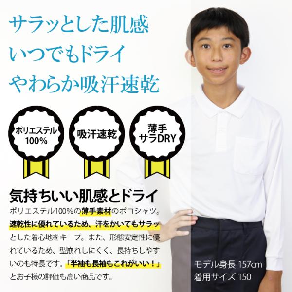 2枚組 ドライメッシュ 長袖 ポロシャツ 小学校 小学生 スクール ポロ 男の子 女の子 スクールポロシャツ 速乾 サラッとDRY