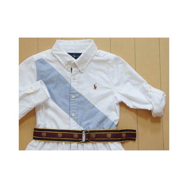 ラルフローレン lalph lauren アウトレット 子供服 女の子 4歳 約 110cm 長袖 ワンピース 白 シャツ素材 ボタンダウン 春 夏 ★3 ガールズ 女児 キッズ