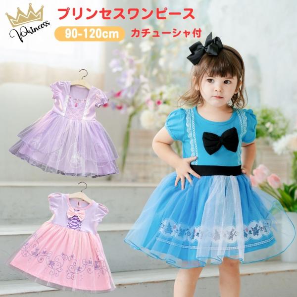 プリンセスワンピース 半袖 プリンセス キッズ ワンピース プリンセスドレス ラプンツェル ソフィア アリス 子供 コスチューム ハロウィン 90 100 110 120