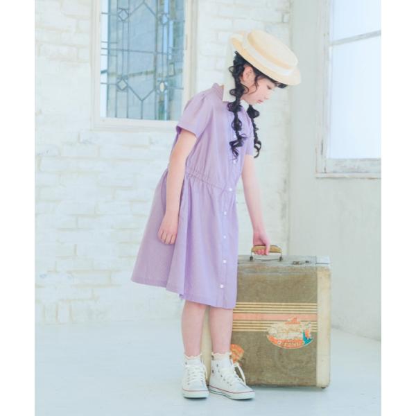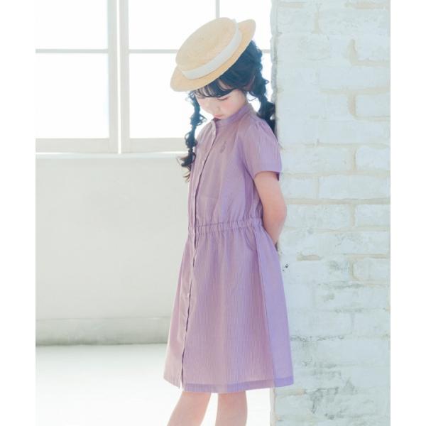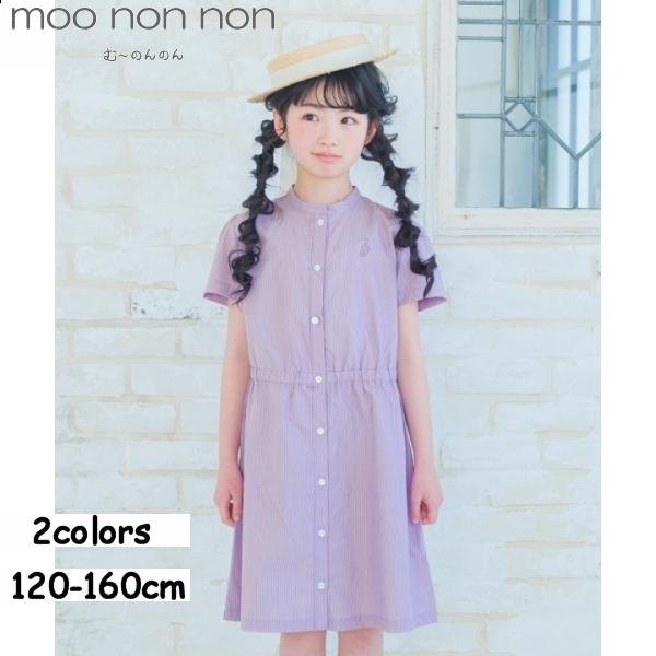 TIME SALE 33%OFF ポイント5倍 むーのんのん 子供服 女の子 ワンピース ジャンパースカート 夏服 半袖 キッズ ストライプ柄 音符 刺繍 スタンドカラー 襟 半そで