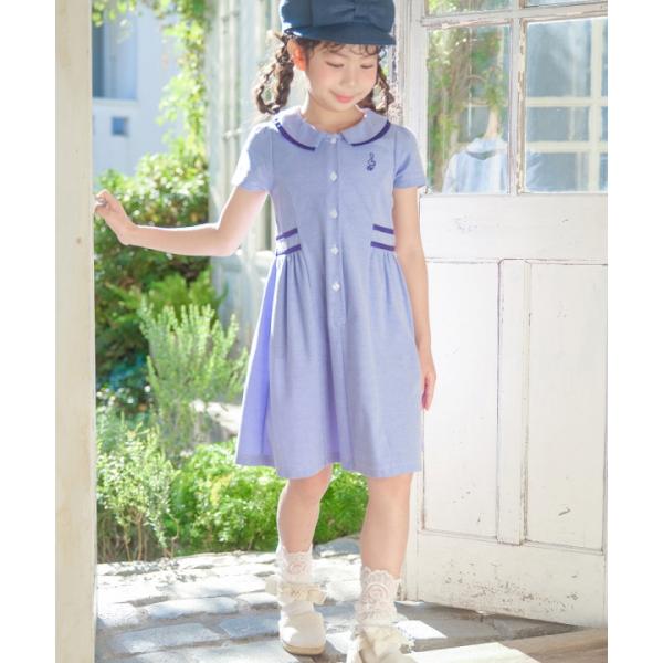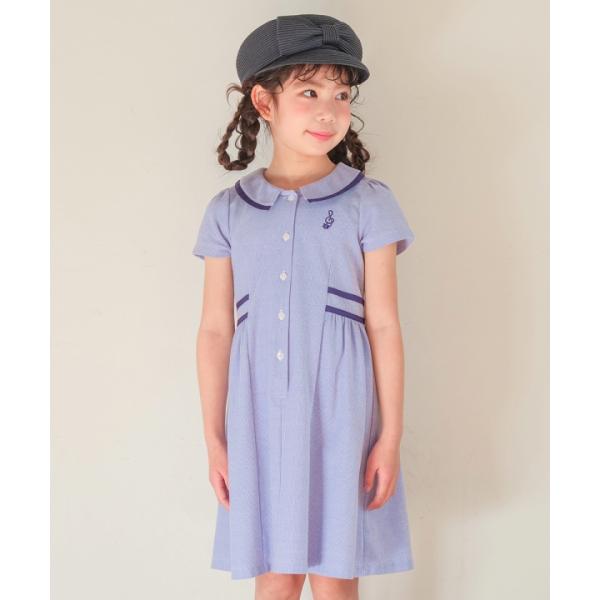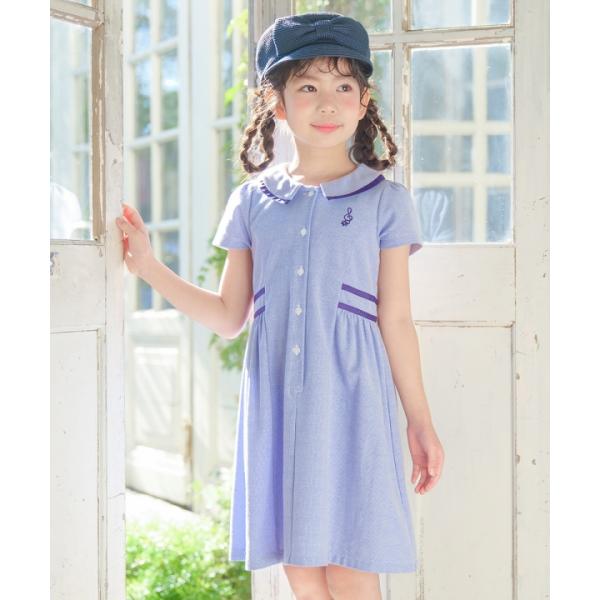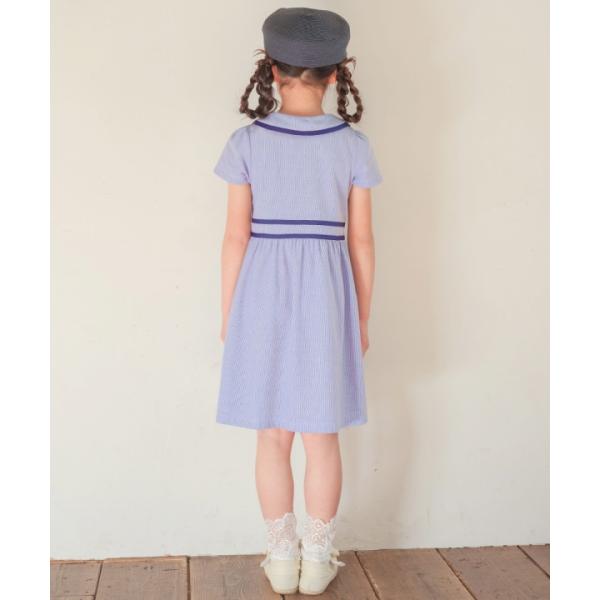 むーのんのん 子供服 女の子 ワンピース 夏服 半袖 子ども服 こども キッズ ジュニア ストライプ柄 襟付き ボタン開き ギャザーワンピース moononnon