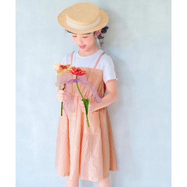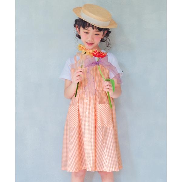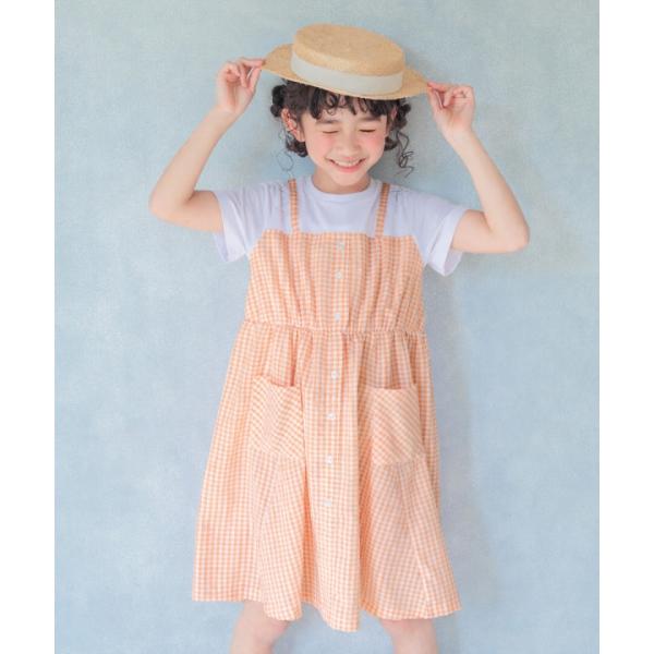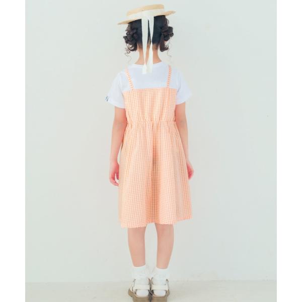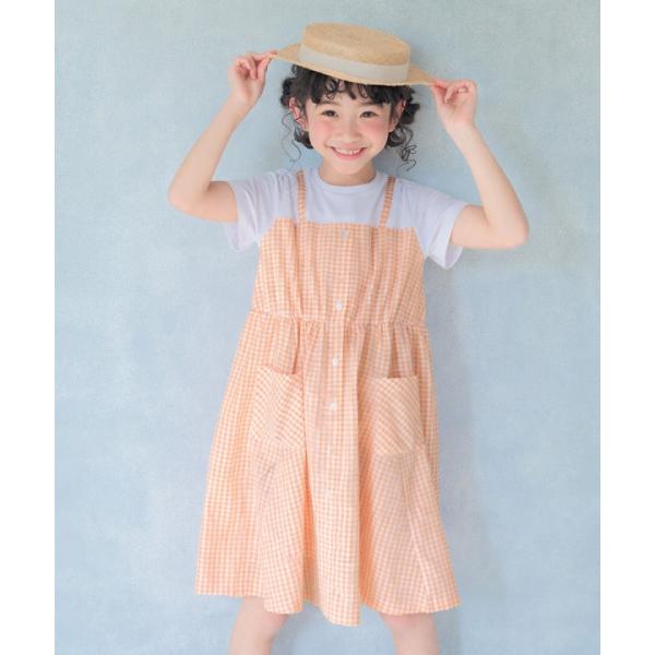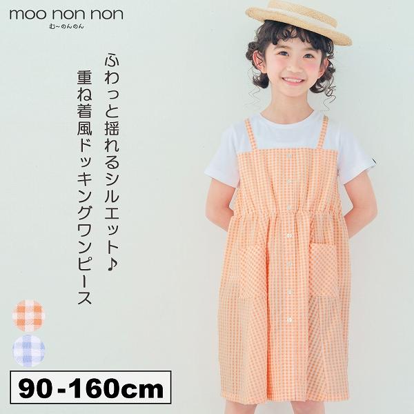 むーのんのん 子供服 女の子 ワンピース 夏服 半袖 子ども服 こども服 こども キッズ ベビー ジュニア ギンガムチェック柄 重ね着風 ポケット moononnon