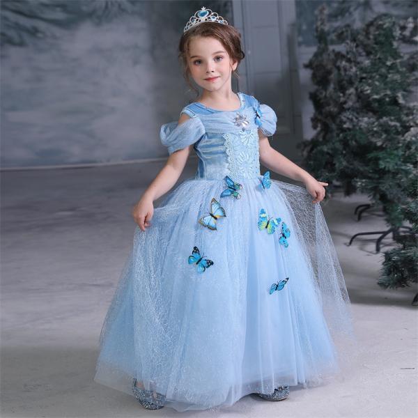 プリンセスドレス シンデレラドレス 仮装 お姫様 なりきり ワンピース クリスマス プレゼントイベント 誕生日 発表会 結婚式 演奏会 お遊戯会 ドレス 蝶々飾り