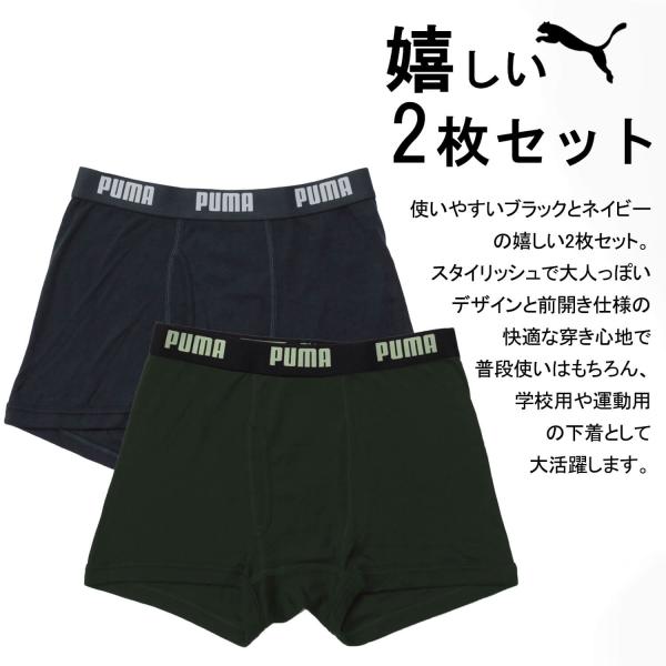 PUMA プーマ ボクサーパンツ 2枚セット キッズ ジュニア 男の子 前開き 綿混 速乾 下着 130 140 150 160 170