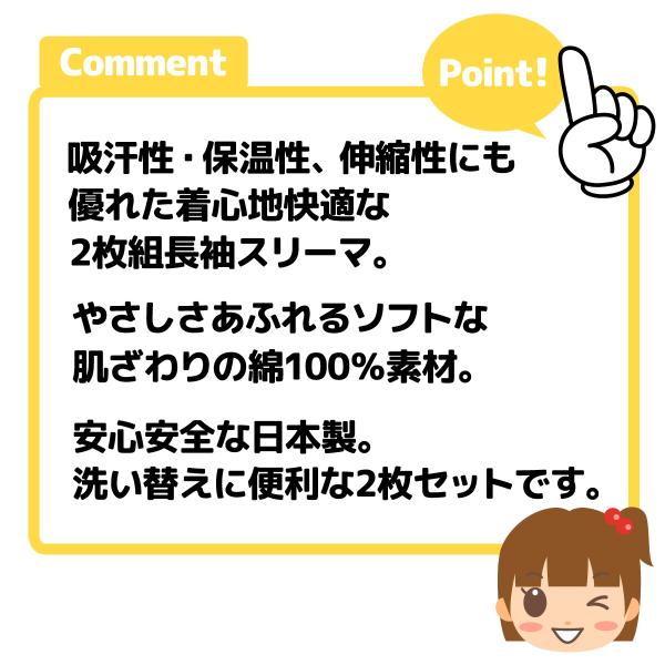送料無料 女児 キッズ 2枚組 長袖 スリーマ 肌着 下着 綿100% 吸汗性 保温性 伸縮性 日本製 yg-0352 メール便対応
