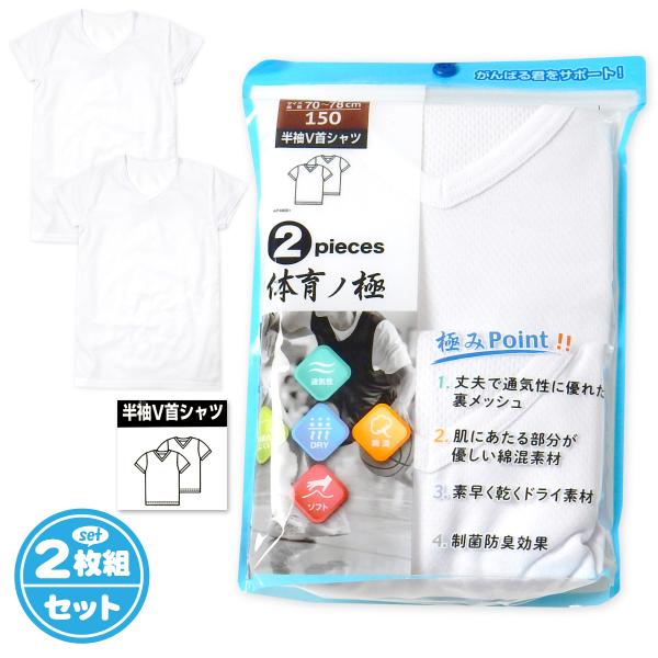 送料無料 2枚組セット 男児 キッズ ジュニア 半袖 シャツ V首 裏メッシュ 綿混 ドライ 制菌防臭 型崩れしにくい 下着 yg-1970 メール便対応
