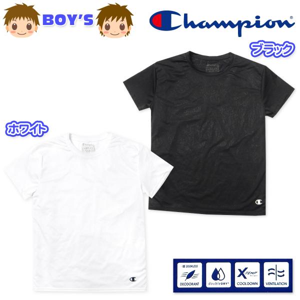 送料無料 男児 キッズ ジュニア 半袖 Tシャツ Champion メッシュ 丸首 抗菌防臭 吸汗速乾 クールダウン アンダーウェア yg-2852 メール便対応