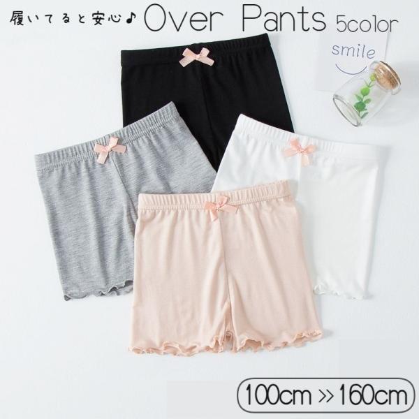 オーバーパンツ 子供 キッズ 女の子 インナーパンツ ペチコート 見せパン ペチパンツ 3分丈 幼稚園 スパッツ 薄手 無地 リボン かわいい ホワイ